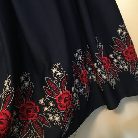 Skinnende sort nederdel med blomsterbroderi