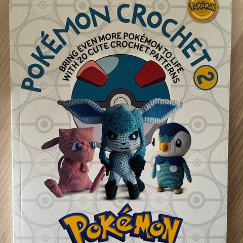 Pokémon Den Officielle Pokémon Hæklebog 2 bog med hækleopskrifter til Pokémon-figurer. Indeholder instruktioner til at hækle forskellige Pokémon-karakterer i garn.