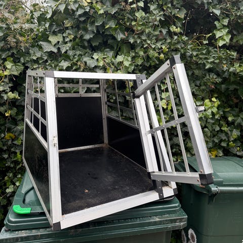 Brugt til to franske bulldogs- dog kan store hunde sagtens benytte buret