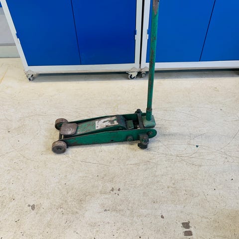 Virker som den skal, løfte højde 53 cm. Inklusiv gummi klods som beskytter når man løfter.