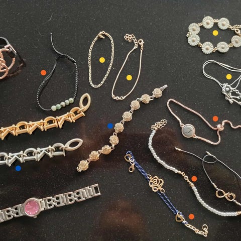Armbånd, FORSKELLIGE ARMBÅND OG ØRERINGE, 4 armbånd og 2 sæt øreringe