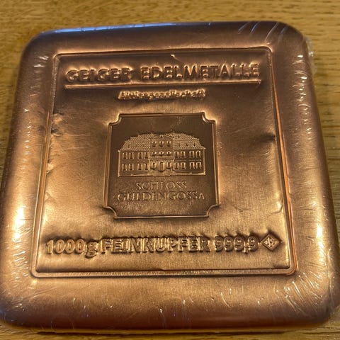 Sælger kobberbarre 1 kg, perfekt stand, stadigvæk i plastik.