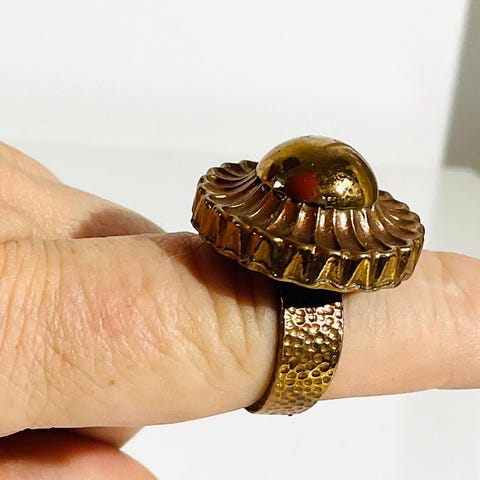 Unikt og råt design med naturlig patina, typisk for nordisk smykkekunst.