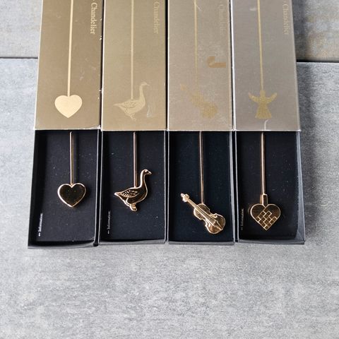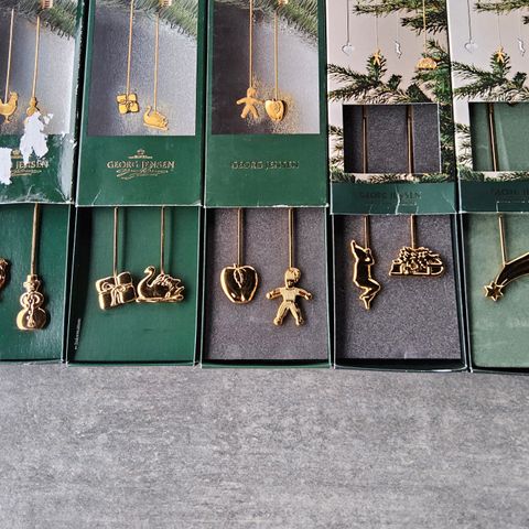 Georg Jensen julepynt bestående af to ornamenter med en ræv og en klase agern i æske. . År 2002.
