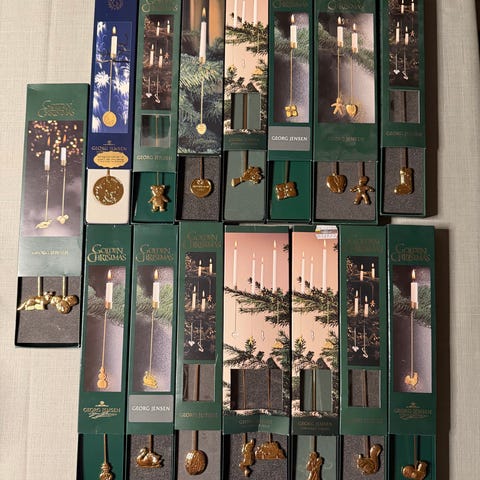Juletræs lysholder. De er velholdte, alm alderrelaterede brugsspor. Æsken er ikke så pæn- den har opbevarings brugsspor- se fotos.