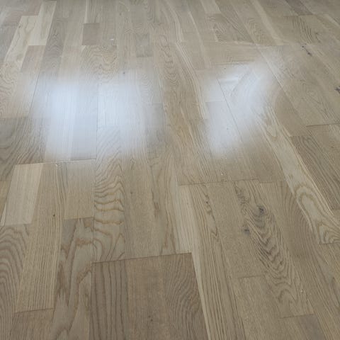 Gulvet består af brede plankebrædder med naturligt træudseende. Velegnet til boligindretning og renovering. Skal selv tages op.