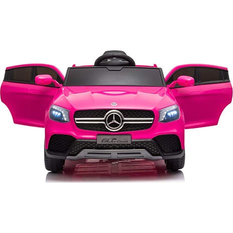 elektrisk legetøjsbil i modellen Mercedes AMG GT i gul farve. Bilen er designet til børn og har detaljer svarende til den originale bilmodel.