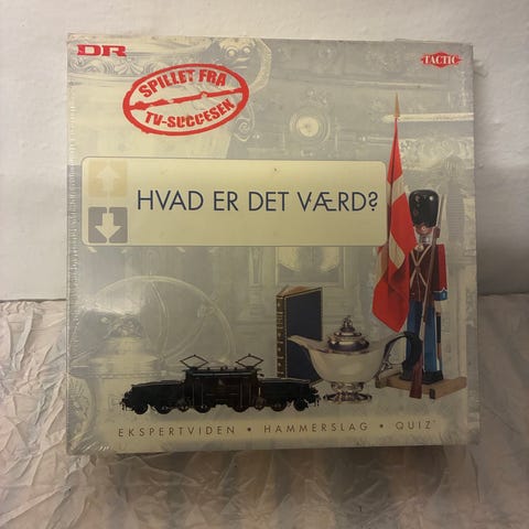 DR Hvad er det værd? Brætspil med quiz og ekspertviden. Spillet er designet til 2-4 spillere, anbefalet alder 12 år og op, og har en spilletid på over 30 minutter. Indeholder elementer som Hammerslag og quiz-komponenter.