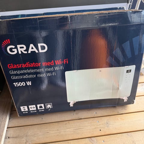 Termo Slim Glas elradiator med en effekt på 600 W. Farven er hvid, og designet er slankt og moderne med glasoverflade. Velegnet til opvarmning af mindre rum.