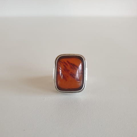 Einer Fehrn. Ring i Sterling Sølv med rav. 1960erne