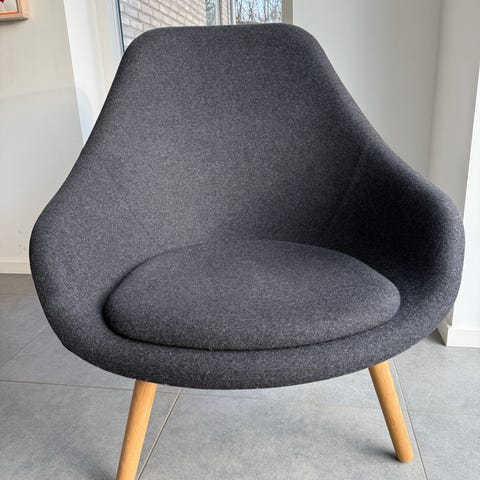 About A Lounge Chair AAL82. Lounge stol. Ingen ridser og aldrig brugt. I flot stand. Sorte ben i eg og sort Sense læder. Nypris: 10.590 kr (Trendbazaar - har kvittering).