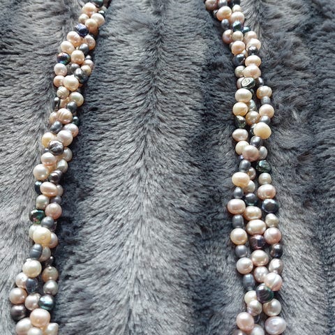 Perlekæde med ferskvandsperler. Med knuder. Ca 50 cm.