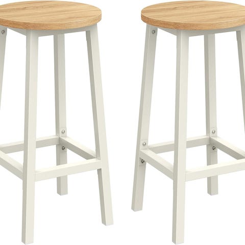Da vi ikke fik den køkken-ø vi havde planlagt, sælger vi nu de to barstole vi havde købt dertil. De er stadig helt nye og usamlede i deres kasse.