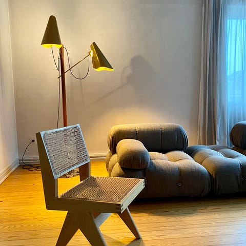 Sælger den populære Tabouret Méribel skammel af Charlotte Perriand for Cassina i amerikansk valnød.