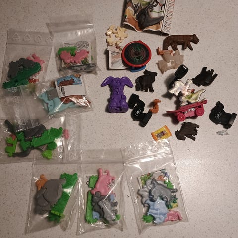 Stor Flyttekasse fyldt med Kinderæg legetøj.