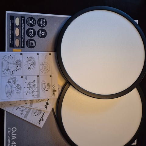 2 stk. Norlux pure 20 sælges, inklusiv nye loftmonterede sorte metaludtag, i stedet for plastik baldakiner. God stand.