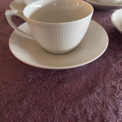 90 Stk. Royal Copenhagen Hvid Riflet underkopper nr 094 til kaffekopper med slid mærker sælges for 10,00 kr. pr. stk.