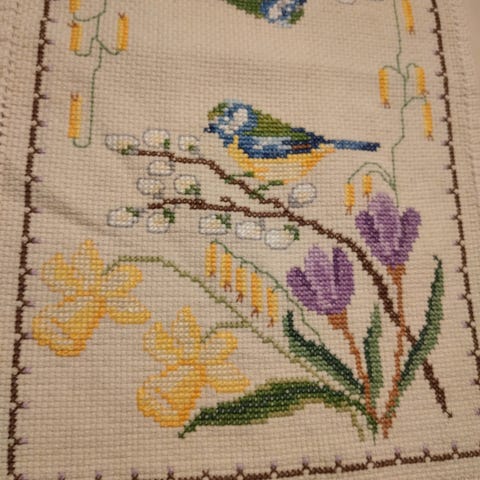 Sødeste løber broderet på aidastof.