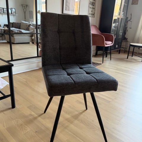 Har 9 af disse nye stole. Men de dur desværre ikke da vi har gulvtæppe under spisebordet, og den løsning vil vi ikke af med.