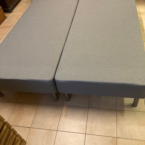 Jysk seng med sort betræk. Sengen har et enkelt design med ben i træ og en sort tekstiloverflade. Velegnet til soveværelse eller gæsteværelse.