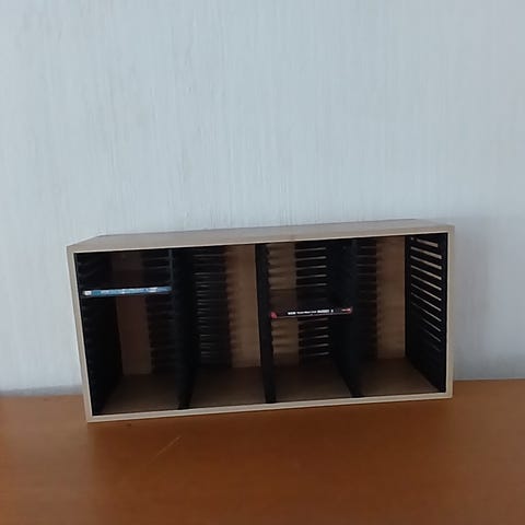 CD opbevaringsreol i sort med ca. 100 CD'er