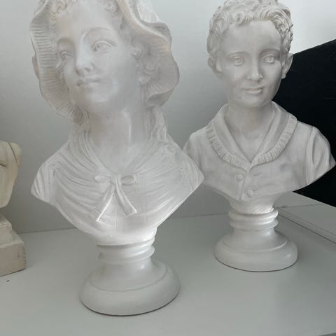 Busten er generelt i rigtig fin stand, med sin oprindelige charme intakt. Den har desværre fået et par mindre skræmmer/mærker efter et fald (se billeder for detaljer) - Disse er primært overfladiske og forringer ikke det samlede indtryk væsentligt.