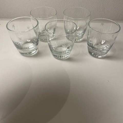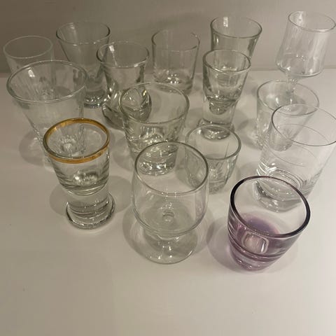 6 små snapseglas (ligner små ølkrus) 4 er ens.