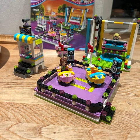 Kombiner sættet med 41127 Forlystelsespark – arkade, 41129 Forlystelsespark – hotdog-vogn og 41130 Forlystelsespark – rutsjebane for at bygge Heartlake forlystelsespark.