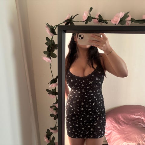H&M Divided hverdagskjole i sort med blomsterprint. Kjolen er i størrelse 38 og lavet af polyester. Den har justerbare stropper og en let figursyet pasform, velegnet til hverdagsbrug.