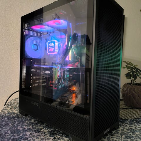 Føniks Gamer PC med RGB lys og stor 24" skærm