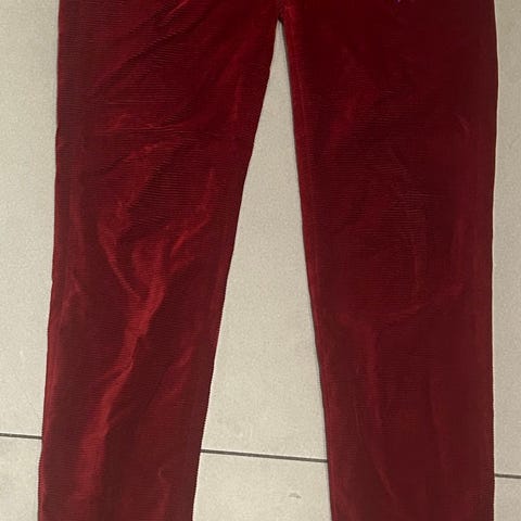 Chokolade brune fløjlsbukser fra Carrera. Str. 46, måler 2x45 cm i livet, 99 cm i fuld længde og 69 cm fra skridt og ned. De er i fin stand, men der er klippet af længden - se foto.