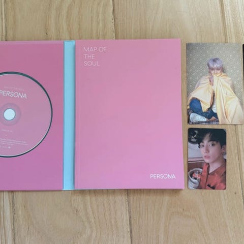 BTS album med tilhørende illustrationer af bandmedlemmer.