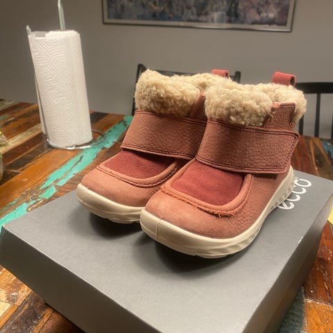 ECCO børnestøvler til pige i størrelse 36. Støvlerne har velcrolukning og en kombination af tekstil og ruskindsmaterialer. Sålerne er gummibelagte for bedre greb. Velegnet til hverdag og udendørs brug.
