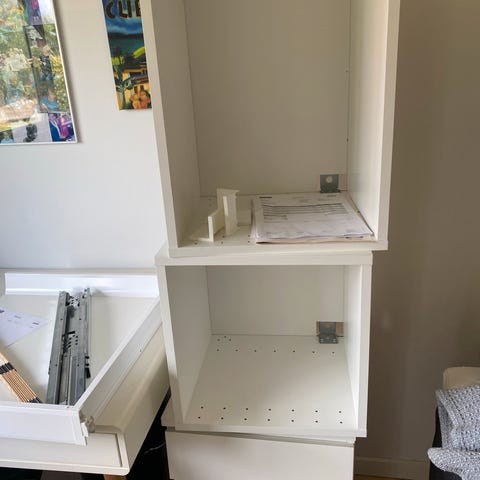 Description: Selling these white cabinet modules. The exterior is in excellent condition, with original protective film still attached to many of the doors. Perfect for a laundry room, garage, or basement setup.