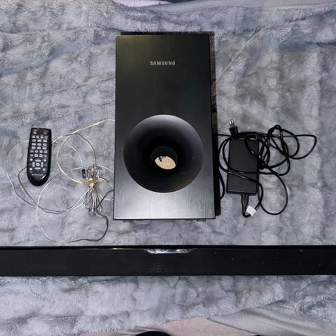 Grundig soundbar med tilhørende subwoofer. Sort farve. Leveres med fjernbetjening og kabler til tilslutning. Har næsten ikke været brugt. Har brugsanvisning til det også.