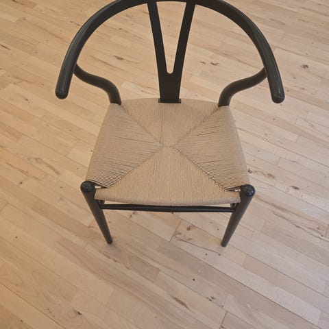 Y stol Eg, sortlakeret sælges. Stolene har den nye højde, og med få mærker på armlænene efter brug. Der er ingen mærkeværdige fejl på flettet. Jeg har 2 stk. tilbage.