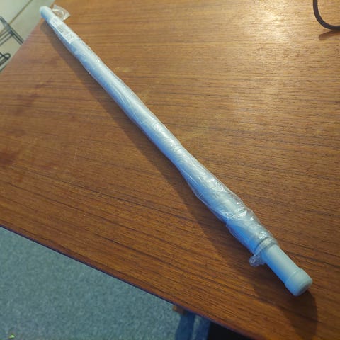 Gardinstang hvid farve hårplast Stangen kan justeres i længden lidt ved at trække i væggen til small vindue, str. 53/56 cm. lang med sugeprop i ender så er der ingen hul på væggen, kan hentes for 40 kr.