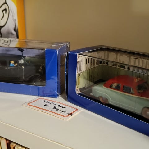 Tintin biler - "Le taxi bleu de L´ile Noire" og "Oldsmobile paradebil"