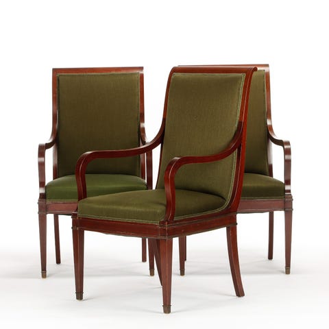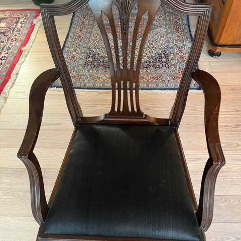 Jeg tilbyder et parti klassiske armstole i mahogni, velegnede til professionel brug i konferenceog mødelokaler, sognegårde, institutioner, hoteller eller restauration.