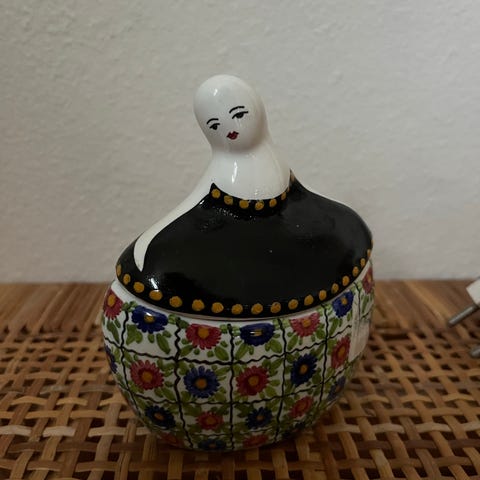 fed aluminia krukke i flotte farver udenpå og Krakeleringer inde i