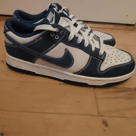 Nike x Sacai sneakers i størrelse 42. Skoene er i flere farver med primært lilla og blå nuancer. Materialet fremstår som tekstil og gummi.
