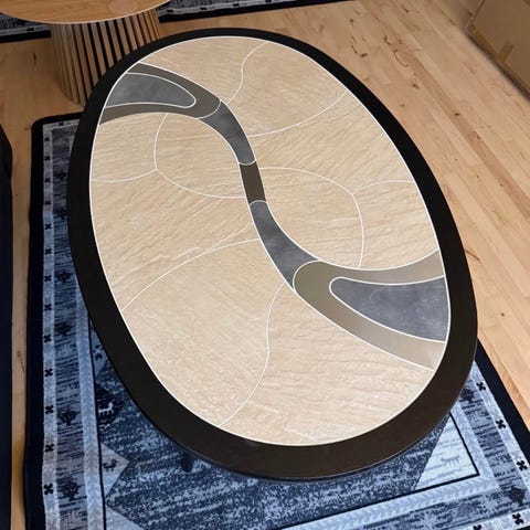 Stærkt og solidt bord, der stadig er flot, selvom det har et ben, der nederst har fået noget fugt (se billede).