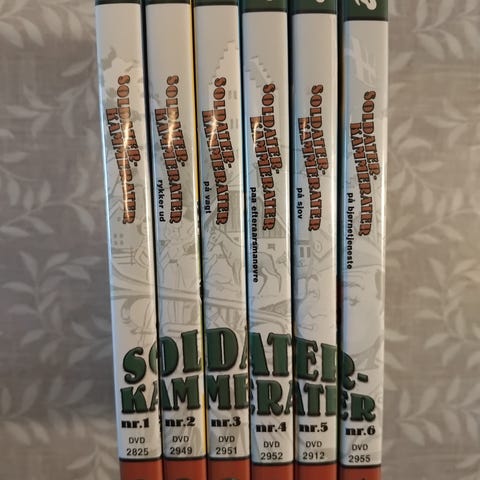 Soldaterkammerater DVD Den Komplette Samling indeholder flere film i serien Soldaterkammerater. Samlingen inkluderer alle de originale film, der følger soldaternes oplevelser og kammeratskab. DVD-sættet er beregnet til visning på almindelige DVD-afspillere. DVD boks med alle seks soldaterkammerater film på DVD