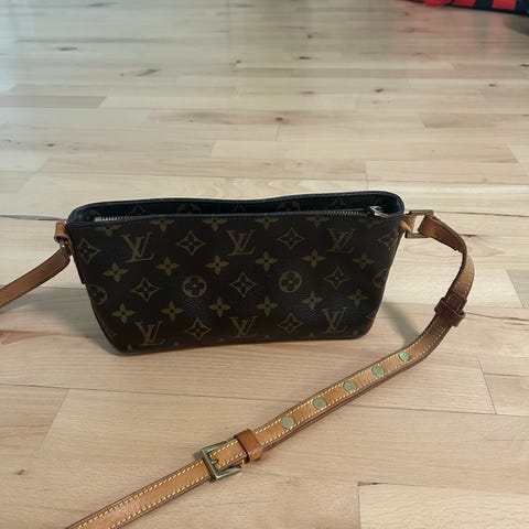 Louis Vuitton lædertaske til unisex brug. Tasken har et klassisk design med monogrammønster. Indvendigt er der foret og flere rum til opbevaring. Tasken er velegnet til daglig brug og opbevaring af personlige ejendele. Tasken er ikke ægte og taske remen mangler. Men ellers er den i fin stand og har en fin størrelse. Metallet er dog lidt slidt men ikke noget Man ligger mærke til. Læderet er også blevet lidt misfarvet men det syntes jeg ikke gør så meget.