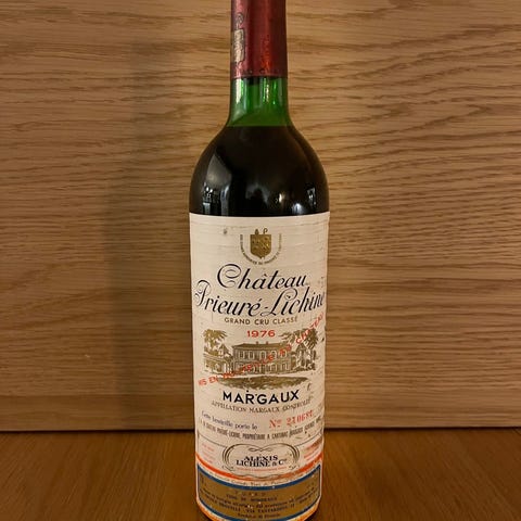 Prisen er sat efter udbuddet af identiske vine på markedet, samt standen af min vin, herunder fyldniveau, foliens og etikettens stand.