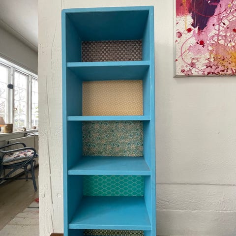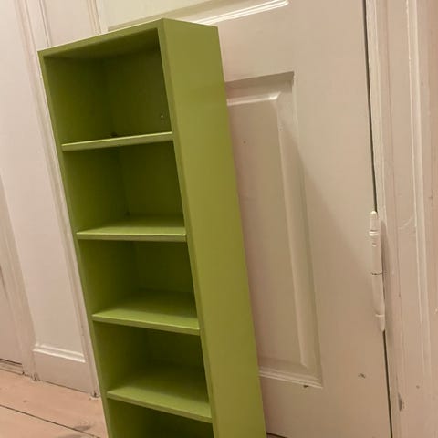 Fin lille reol i støvet grøn
