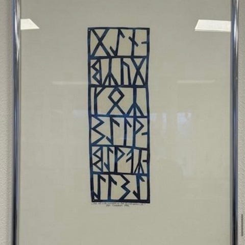 Offset litografi af den Aarhusianske kunstner Per Kramer. Titel: For mange møder. Indrammet med sølvfarvet træramme og passe partout.