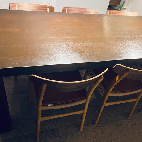 Fint spisebord med egrtræsunddrstel. Smådkader i kanterne, som kan ordnes med en slettelsk. Ellers velholdt.