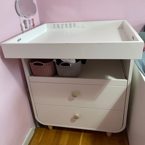 IKEA MYLLRA puslebord i hvid. Møblet har to skuffer med god plads.