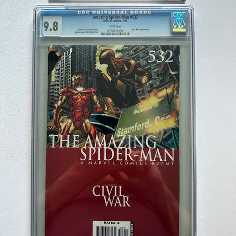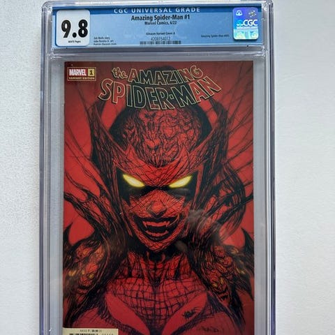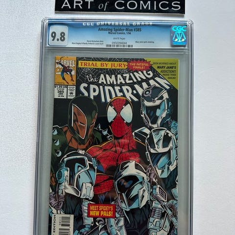 CGC 9.8 vurderet første udgave Amazing Spider-Man nr. 371 – Black Cat-tilstedeværelse, Marvel Comics, tegnere Mark Bagley, Randy Emberlin og David Michelinie. Klik på den blå "gå til varen" knap, for at købe eller byde på denne vare. Den samlede pris vil blive vist inden du afgiver dit bud.